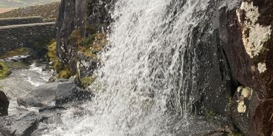 Pedlar's lake is situated on Conor Pass, connecting Dingle with Castlegregory in Co.Kerry. Across from the majestic Mount Brandon It is one of Ireland's highest mountain passes. This amphitheatre-like valley has left behind an ancient deep lake called Pedlar's Lake which streams down to Pedlar's waterfall. The waterfall is majestic and powerful as the water crashes onto the ground. This deep lake holds pure mountain spring water at an altitude of around 1400 feet. The purity of the glacial lake is calming and healing. The mountains were formed by glacial movement during the last Ice Age, and these glaciers slowly moved through the land, scooping out the valleys and littering the land with boulders and rock formations. Pedlar's Lake, is actually where the first evidence for The Ice Age in Ireland was discovered. Pedlar's Waterfall is the epicentre of everything that is perfect on Conor Pass. The water sings a melodic tune as it reaches the ground. Close your eyes and breathe in this powerful energy.